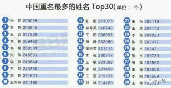 就和重名一样,你看全国叫张伟的接近30万。除了上面几个,九饼哥再挑重点说几个。
