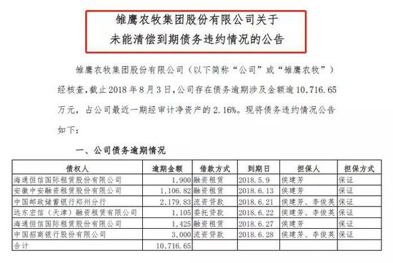 1、养猪第一股雏鹰农牧1亿债务逾期