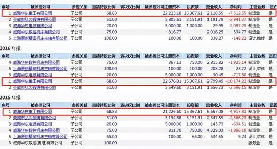 近三年,华东数控控股的5-6家子公司中,除了个别公司每年有几十到几百万不等的利润,其余子公司连年亏损,盈利能力不容乐观。