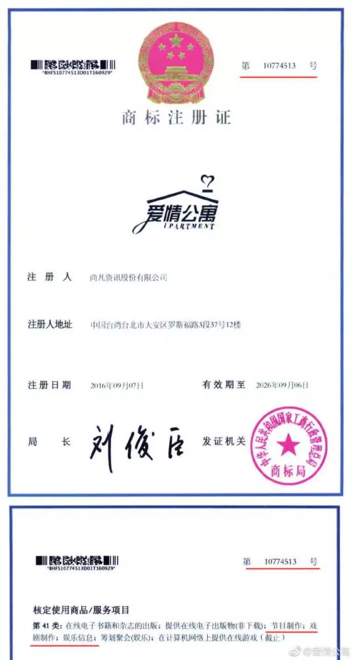 从其晒出的“版权证明书”上可以看到,联凡计算机技术上海公司为剧版《爱情公寓》的出资方和唯一版权人。