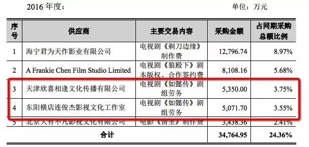直到2017年新丽传媒披露了《首次公开发行股票招股说明书》(申报稿),《招股说明书》显示,霍建华和周迅的片酬并没有那么高。“2016年度主要支出”一栏显示,周迅片酬5350万,霍建华5071.7万。虽然不到1.5亿,两人合计超1亿元的片酬也堪称天价。