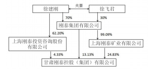 刚泰控股是民营企业刚泰集团旗下的一家上市公司。刚泰集团直接持有刚泰控股13.13%的股份,并通过控股上海刚泰矿业有限公司持有刚泰控股24.83%的股份。