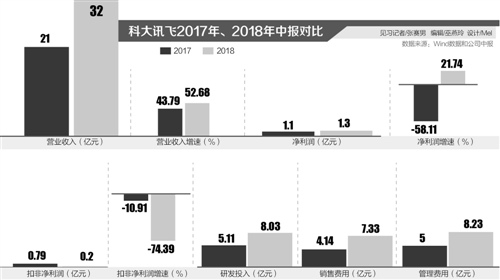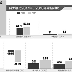 相应地,新增人员带来当期薪酬、费用的增加,直接导致上半年扣除非经常性损益的净利润下滑较多。数据显示,2018年上半年科大讯飞员工规模较去年同期增长近3500人。