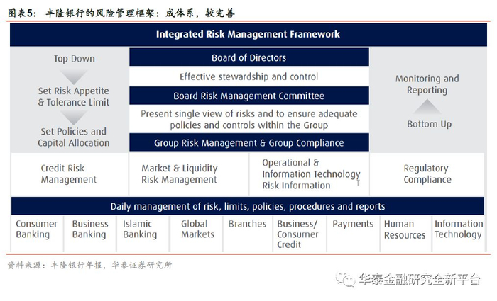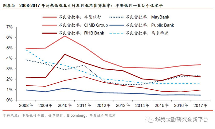 除资金实力雄厚外,丰隆银行具有与成都银行业务相似、风控能力较强的特征,在多方位为成都银行提供支持。在成都银行引入外资的过程中,丰隆银行成功进入的主要原因是其资金实力雄厚、业务与成都银行相似、风控能力较强。2011-2017年,丰隆银行不良贷款率均低于马来西亚平均水平,2017年末不良贷款率为0.96%,较马来西亚银行业平均水平低59bp。丰隆银行入股以来,设立了3000万元的培训基金和2000万元的技术援助基金,专门从花旗银行等国际知名机构聘请专家长期派驻到成都银行开展技术支持,帮助成都银行建立了风险控制数据库。目前成都银行的副董事长及一名董事由丰隆银行派驻。