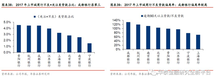 成都银行的不良贷款率较同业高,但已出现边际改善。2017年Q4,成都银行不良贷款率环比大降36bp至1.69%,2018年Q1继续下降1bp至1.68%,但仍居上市城商行首位。若考虑关注类贷款,2017年末(不良+关注)类贷款占比4.43%,居上市城商行第三位。公司的不良贷款偏离度有所下降,2017年末,逾期90天以上贷款与不良贷款的比例为131%,虽仍居上市城商行之首,但较2017年半年末下降9pct。