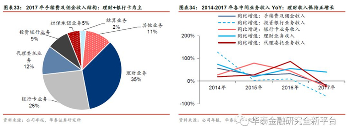 中间业务:占比较低,理财+银行卡为主