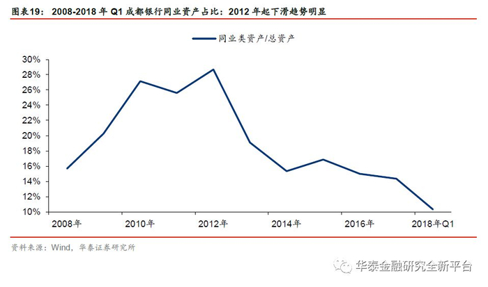 3. 公司位于成都,存款竞争压力小。且公司的吸存能力较强,2018年Q1末存款已占成都市的9.5%。货币政策的边际宽松为银行成都银行存款增长创造条件。我们假设2018-2020年存款增速7%、24%、26%。