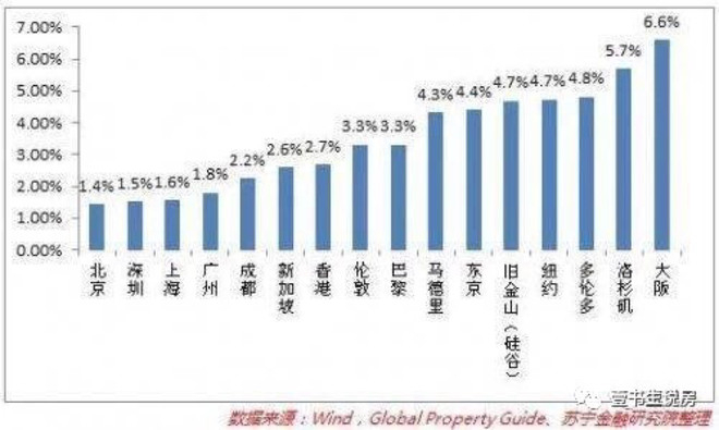 上述统计数据显示,北上广深等四大一线城市的住宅租金回报率分别仅为1.4%、1.6%、1.8%、1.5%。