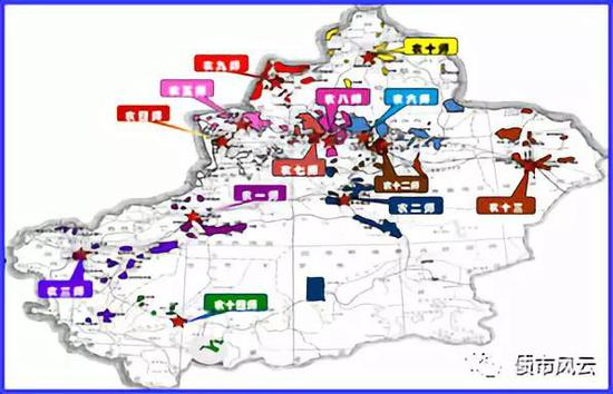 兵团的首要职责是屯垦戍边,因此各师主要位于塔克拉玛干沙漠边缘、古尔班通古特沙漠边缘和中国西北边境线,分布特点或城郊、或偏远、或边境,主业以农业和工矿为主,第三产业占比不高。