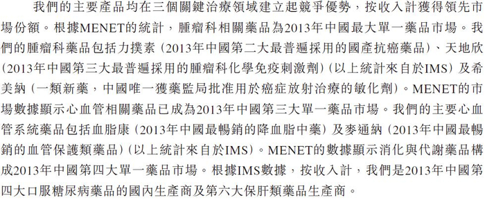上市那年(2014.7),其三大系列“肿瘤、心血管、消化与代谢”的七个主打产品,有六个是买来的。