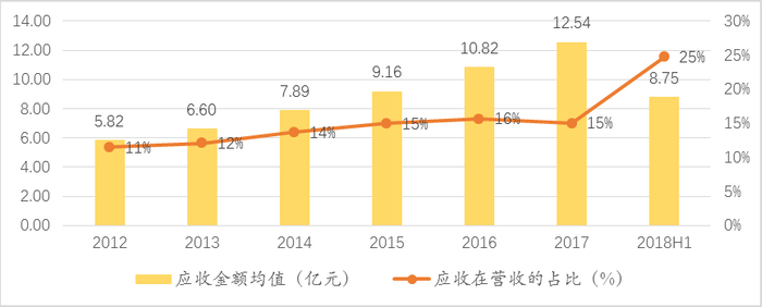 第一,现金流回收情况恶化。以上市公司为例,经营活动产生的净现金流正在明显下降,去年四季度只有3.4万亿,比前年同期下降了一半还多,今年2-4季度现金流数据预计也不容乐观。现金流下滑来自两个因素:一方面营业收入下滑,一季度仅有11.3%的增长,去年一季度高达21%。另一方面应收账款和坏账损失增加。2017年底全部应收规模高达12.54亿元,而2018年前半年就已达到8.85亿元。