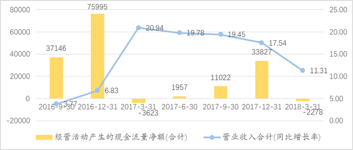 图24 上市公司营业收入增速下降,经营现金流下降