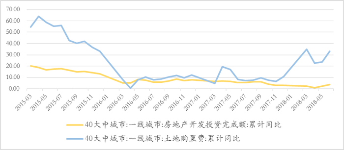 图3 一线城市开发投资上行,主要是由土地购置费拉动,涨幅超过30%