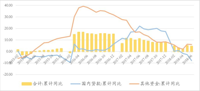 注:外资波动较大,2018年6月同比增长为-73.1%,但占比较小,未进行列示。