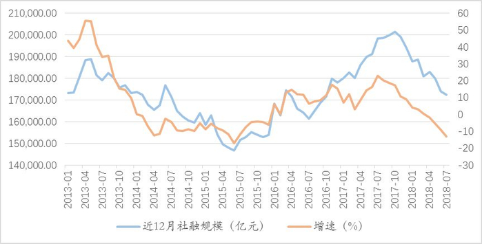 丨第一,经济下行基本确定,资金需求是萎缩的,可能出现“衰退型宽松”。社融可以反映实体资金的需求,也是未来实体需求的领先指标。从12月滚动的社融增量来看,2017年10月达到近20万亿元的高峰后就不断下行,最新数据只有17万亿元,增速也从2017年末的9.2%不断下滑至-13%,社融增速下滑明显。现在政策虽然想宽信用,但是如前面所分析的,未来社融增速仍将继续下行,实体宽信用不容乐观。除了非标转标回表带来的信贷增加,其他的融资渠道都在萎缩,尤其是表外融资和股权融资。表外融资从3月以来就一直在负增长,6月单月就减少了近7000亿,和去年的正增长形成鲜明对比。股市IPO融资也大幅缩量,去年一周几乎有6、7个新股上市,全年438个IPO,而今年上半年只有58家,比去年同期下降近60%。