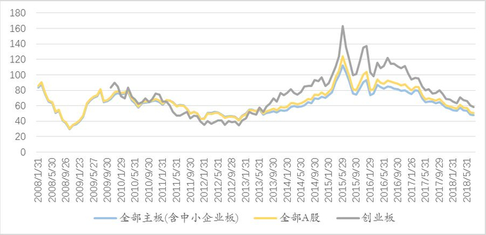 图19 A股市场市盈率(TTM)