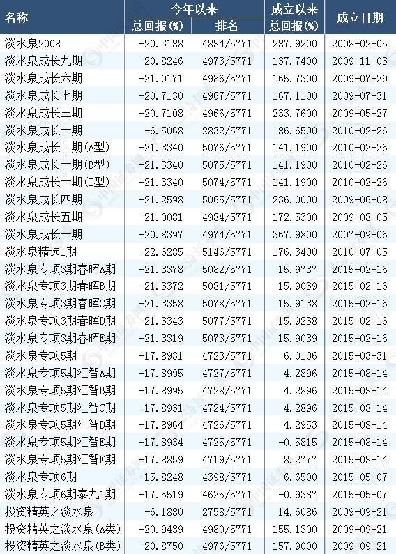 淡水泉旗下产品年内业绩表现