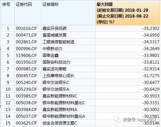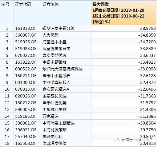 2018年以来回撤率最大的普通股票型基金(数据来源:wind)