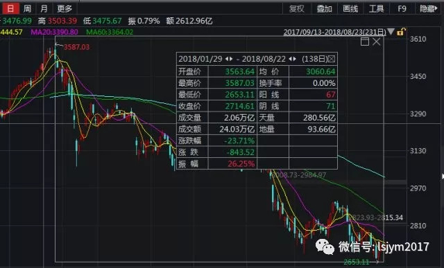 2018年1月29日,上证指数在创出3587点高点以后,持续下跌至今。截至8月22日,累计跌幅为23.71%。