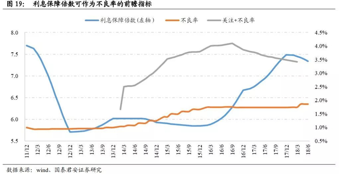 1、从周期把握真实不良:不良生成的前一步,都是企业面临偿债能力恶化,因此总量上可以用利息保障倍数作为资产质量的先行指标。此外,行业和地区的影响也不容忽视。