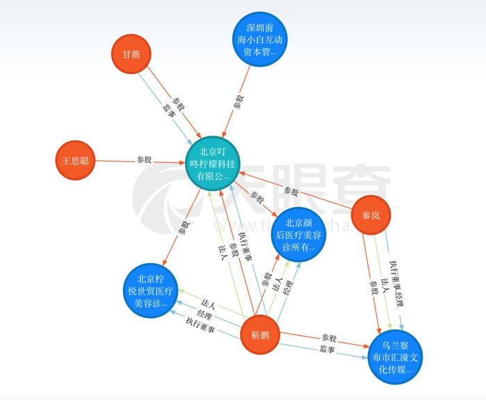 叮咚柠檬是一家美容公司,官网宣传中秦岚被冠以“首席体验官”头衔。据此前媒体宣传,这是王思聪布局美业的“处女投”。叮咚柠檬的两家控股子公司也均为医美公司:北京颜后医疗美容诊所有限公司和北京柠悦世贸医疗美容诊所有限公司。据IT桔子信息,2016年6月,叮咚柠檬完成了天使融资,总融资额约3000万人民币,估值3亿人民币。