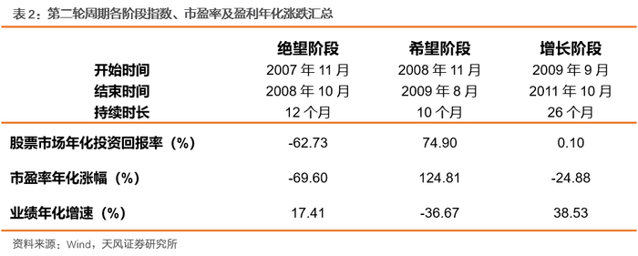 第二轮股市周期始于2007年11月,至2012年1月截止,共经历绝望、希望、增长三个阶段。