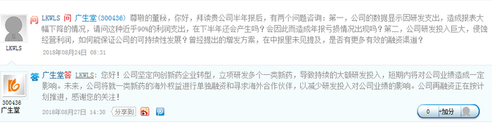 中国网财经8月27日讯 广生堂今日在互动平台上回复投资者提问时表示,公司坚定向创新药企业转型,立项研发多个一类新药,导致持续的大额研发投入,短期内将对公司业绩造成一定影响。未来,公司将就一类新药的海外权益进行单独融资和寻求海外合作伙伴,以减少研发投入对公司业绩的影响。公司再融资正在按计划推进。