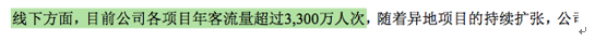 另外,财报中提到,线下方面目前公司各项目年客流量超过3300万人次。