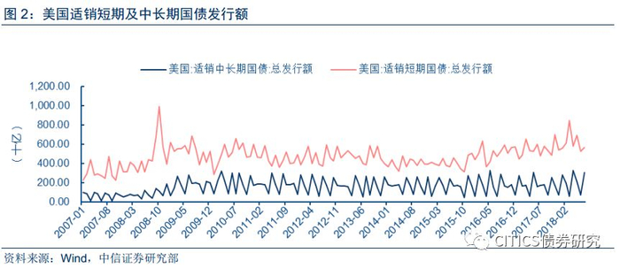 本次美债期限利差的收窄,主要是由长端利率的上涨远不及短端导致。短端利率主要反映货币政策的变化,长端利率主要反映自然利率和通胀预期。从通胀预期看,核心PCE指数和原油价格的走高,抬升通胀预期,从而使长端收益率上升。从货币政策看,2018年以来,美联储于3月和6月分别加息0.25bp,并预期于下半年再加息1-2次,使得短端利率的呈陡峭化上升。从供需看,供给端,积极的财政政策使得政府赤字的不断扩大,从而促进了国债的发行,主要以发行短期的国债为主,使得短期国债的供给远大于长期国债,推动短期收益率的上升;需求端方面,美联储从去年10月开始缩表,主要减少中长期国债的持有,但是由于美联储缩表的进度不及计划,抛售的规模并不大,因此长端国债收益率的上升缓慢。