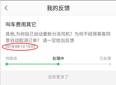 在这次的打车事件中,滴滴公司先是说后台查看下来只显示“司机未接单,乘客取消”,但我不屈不挠态度强硬,并要求后续反馈;