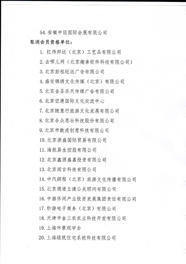 33家单位被取消中国旅游景区协会会员资格