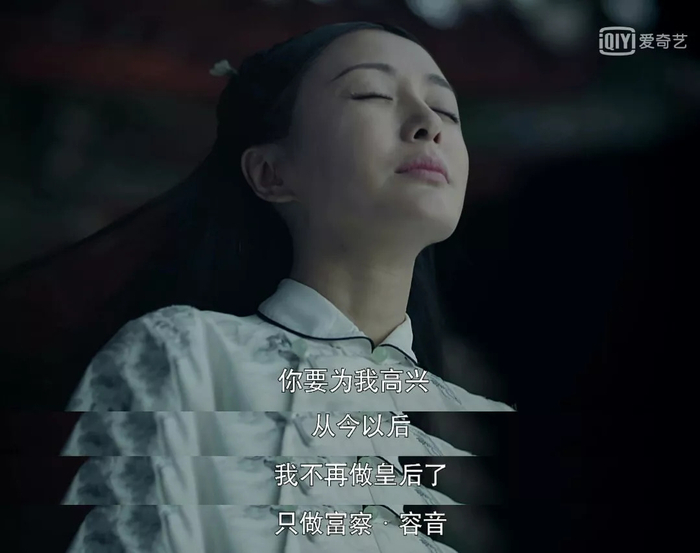 当她在经历了丧子之痛之后的自杀,并非是因为对皇帝的情感的万念俱灰,而是决绝的反叛,“从今以后,我不再做皇后了,只做富察容音”。