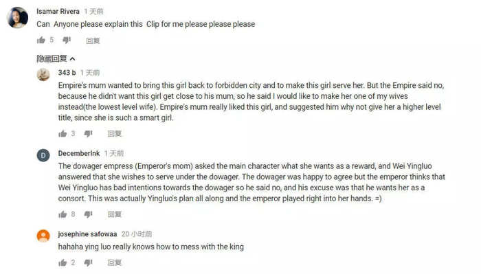 这种一集好几个情节推动下一个情节的快,换到其他的剧,估计需要三集左右才能讲完一个反杀。《延禧攻略》没有了注水的起承转合,快速推进让剧情多了金手指大开的观感,却也让很多观众体会到了纾解的快感。