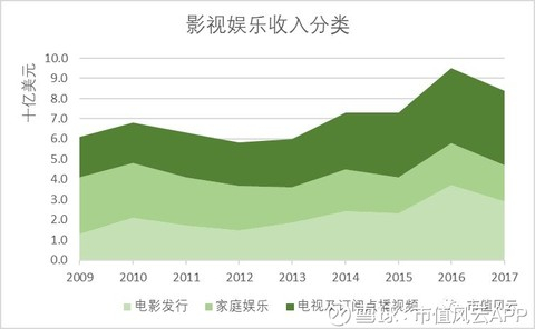 以2017财年为例,电影发行收入29亿,家庭娱乐收入18亿,而电视及订阅点播视频收入则为37亿美元。