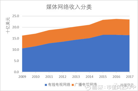 作为迪士尼旗下第一大业务板块,媒体网络主要包括有线(cable)电视网络和广播(broadcast)电视网络,后者还包括电视节目制作与分发,电视台及广播电台运营等。