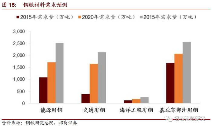 超大输量管线钢和第二、第三代汽车钢的需求量未来将大幅增加,钢铁材料的发展方向和趋势是高洁净度、高均匀性、超细组织、高精度和高附加值,国内钢铁制造急需解决关键基础钢铁新材料先进的制造工艺和用户应用技术。我国关键基础钢铁新材料的质量、性能、绿色化水平显著提高,但高端装备用材料方面仍然与国外有很大差距。一般而言,在钢铁行业8个PPM的钢属于好钢,5个PPM的钢属于顶级钢,高端轴承所需要的正是顶级钢材。高端轴承用钢的研发、制造与销售基本上被世界轴承巨头美国铁姆肯、瑞典SKF所垄断。这些国外厂商在山东烟台、济南采购中国的低端材质,运用他们的核心技术做成高端轴承,转而以十倍的价格回售给中国市场。钢材的工艺技术发展水平、品种质量状况明显优于国内钢材。高端装备用钢铁材料需要国家、行业等方面的政策支持,加强了关键技术突破,同时还需要产业规模扩大、产业链完善,关键钢铁材料功能性明显、具有特定的服务领域。