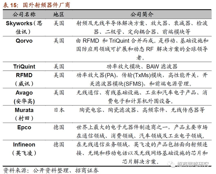 3、国内外射频器件主要厂商