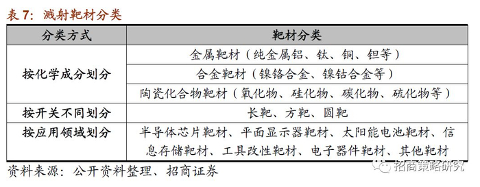 1、高纯度溅射靶材分类