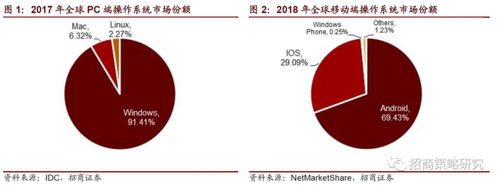 1、 PC操作系统及手机操作系统,市场占有率