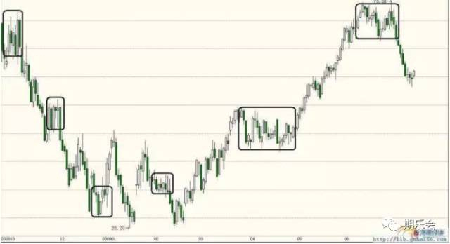 贴图,这是原油,所有的金融市场都一样,外汇股票期货债券理念没区别。黑框框是震荡,其他都是趋势行情,我们都是死在这些框里的。很多系统都是上图来详细说明什么进场出场点,都是马后炮,换个图全死。大家先问问自己,我的系统能在图里明显趋势的地方赚钱么?如果不确定,复盘!随便拿手边什么图,先圈震荡,然后看忽略震荡后,单边能不能赚,能赚所有行情的%多少?
