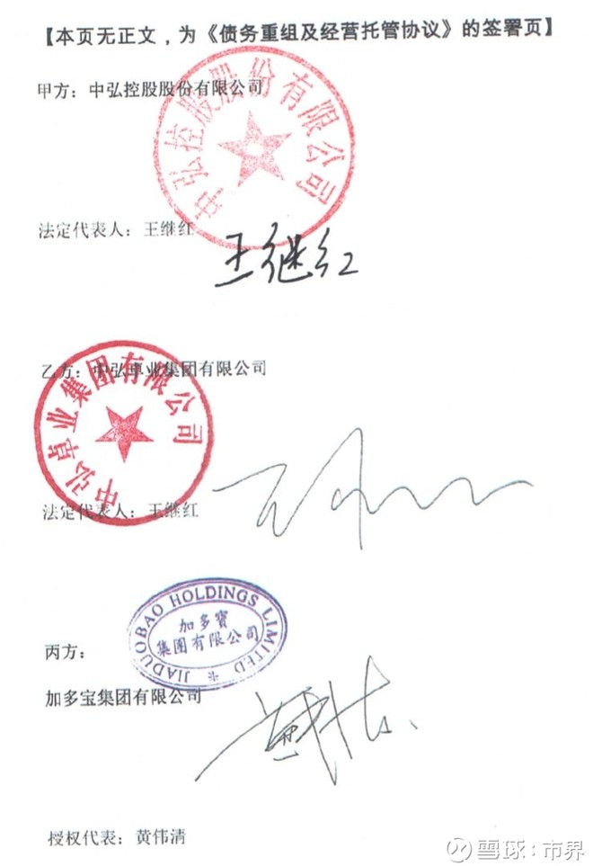 与此同时,新一任“白衣骑士”加多宝亮相。中弘股份及其控股股东中弘集团与加多宝、银谊资本共同签署《债务重组及经营托管协议》。尽调结束后,加多宝将有可能对中弘进行债务重组和托管经营。在协议中代表加多宝签字的是加多宝集团首席执行官黄伟清。