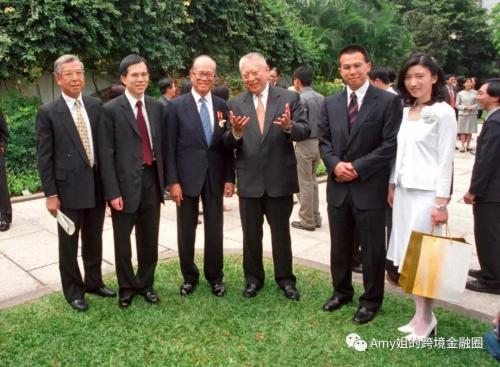△香港禮賓府2001年度勳銜頒授典禮上,(左二至右)李澤钜、李嘉誠、董建華、李澤楷、王富信合影留念