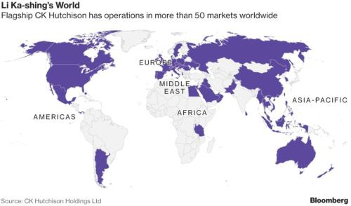 △李嘉诚的商业版图,遍布全球50多个国家,从事的产业,横跨通信、基建、港口、石油、零售等多个领域,集团员工超过30万人。(来源:Bloomberg)