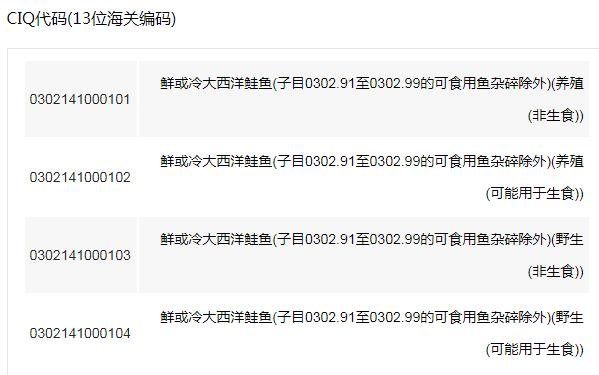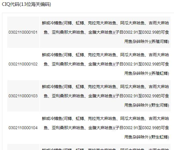 记者在中国的海关编码查询网站输入了“三文鱼”进行检索。