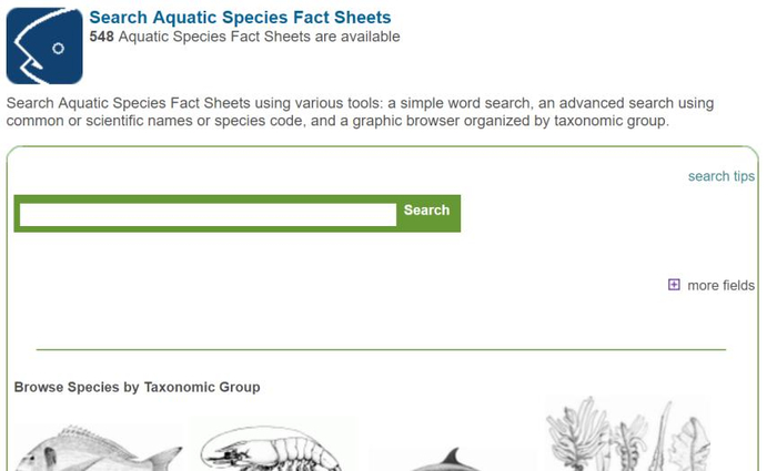 点开FAO相关物种情况说明(FAO Species Fact Sheet)的超链接,进入的是FAO“鱼类搜索”页面,用户可以通过键入鱼类的名称获取该鱼类的基本信息,相当于一个鱼类的网上百科全书。