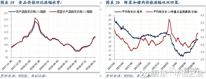 上周农产品批发价格200指数收于105.54,环比上升0.9%;菜篮子产品批发价格200指数收于106.22,环比上涨1.0%(图表3)。细项数据看,上周猪肉价格环比上涨0.1%,蔬菜价格环比上涨0.71%(图表4)。上周猪肉和蔬菜价格涨幅均大幅放缓并带动食品价格涨幅大幅收窄。8月农业部高频数据显示以蔬菜、猪肉和鸡蛋为主的食品价格超季节性上涨,预计将带动CPI同比上扬至2.3%左右。展望后市,短期内南方等局部地区高温、大雨天气仍然会对蔬菜价格带来支撑,但随着秋季蔬菜供给季节性回升,鲜菜价格涨幅有望进一步回落。猪肉方面,上周安徽省芜湖市南陵县发生一起非洲猪瘟疫情,农业农村部表示不排除继续出现新发疫情的可能。如果后续疫情继续扩散,如果引发养殖户恐慌性出栏和居民消费的减少将带来猪价的短期下跌。