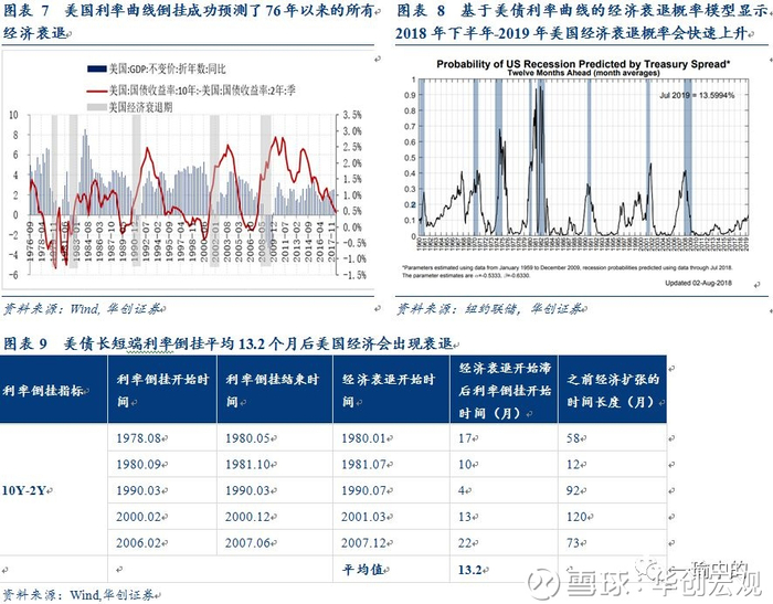 美国利率曲线倒挂领先美国经济衰退13.2个月:利率曲线在美国1976年以来的历次经济衰退前均出现倒挂。平均来看利率曲线倒挂13.2个月后美国经济进入衰退。根据纽约联储的经济衰退预测模型(基于利率曲线的斜率),2018年下半年至2019年美国经济衰退概率在逐步上升。