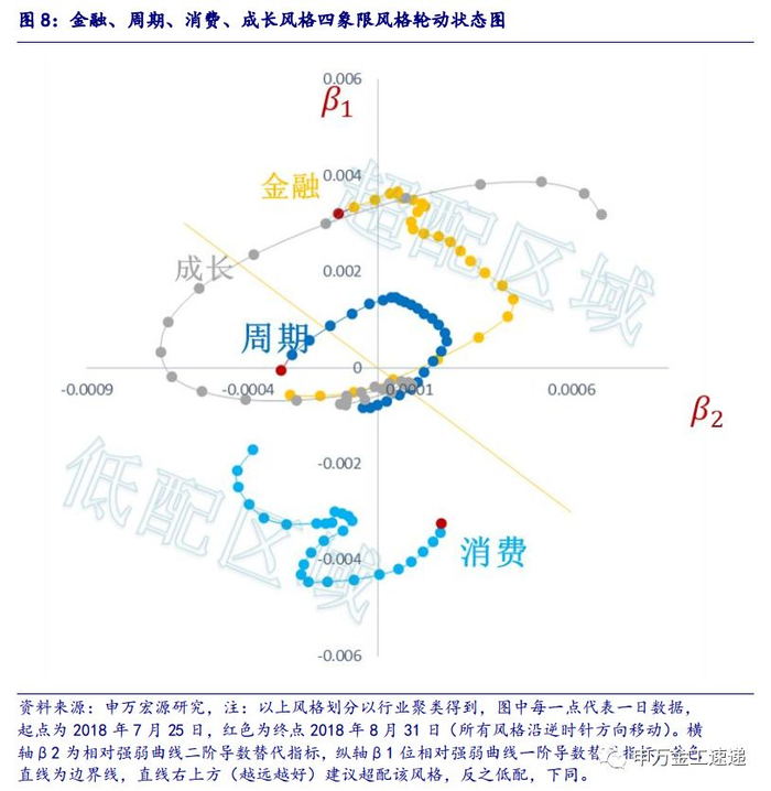根据申万金工四象限风格轮动图,在我们划分的金融、周期、消费、成长四大风格板块中,金融风格依然处于最佳位置。此外,周期风格走弱,消费板块尚未回到超配区域,目前时点建议继续超配金融板块。