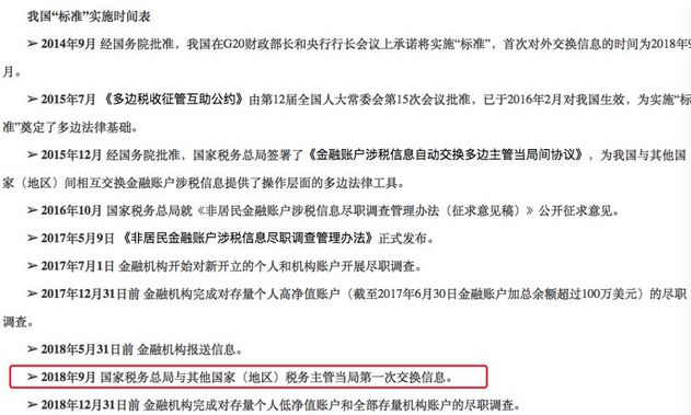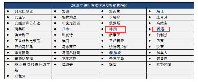 而在中国,按照此前计划,中国内地、中国香港和中国澳门都在今年9月同其他CRS参与国完成第一次信息交换,此外还包括新加坡、巴哈马、巴林……,共47个国家和地区。