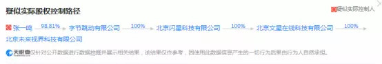 (天眼查查询“放心借”后,搜索结果指向北京未来视界科技有限公司,穿透后实际控制人为张一鸣。)